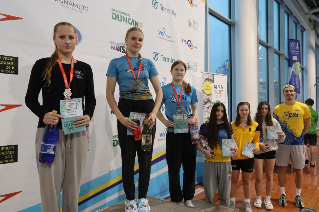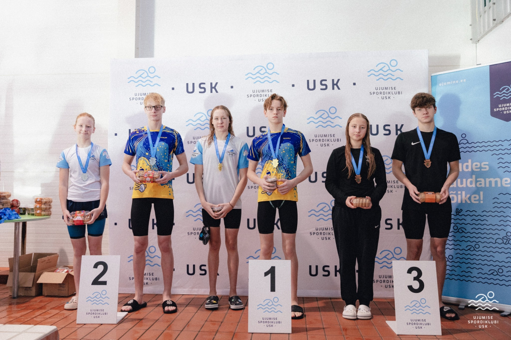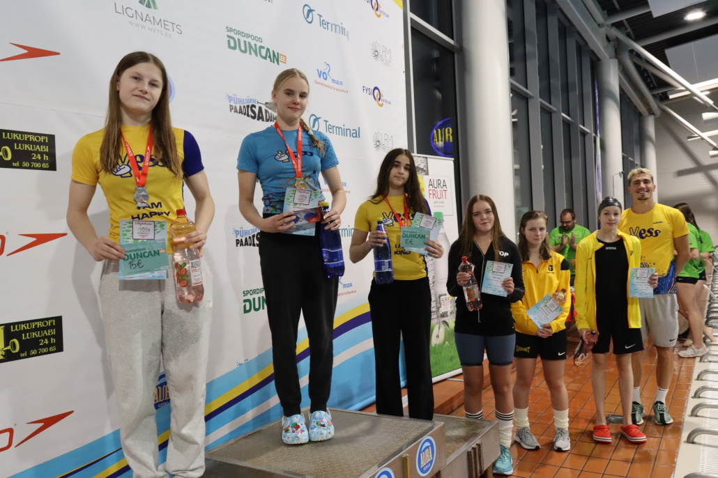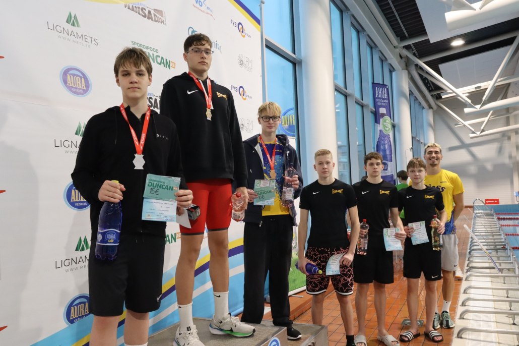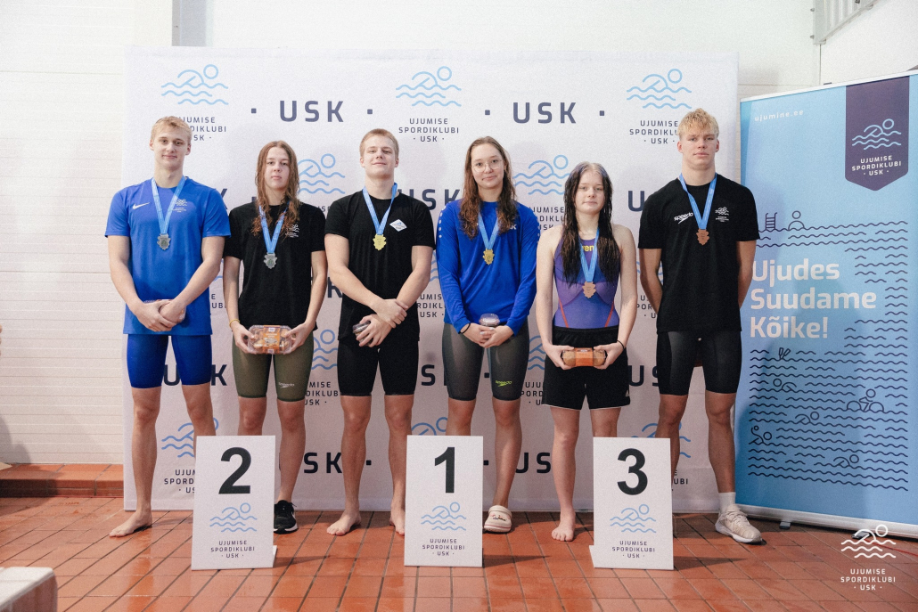 🥇 50 selili 33,15 🥈 50 liblikat 32,58 🥉 100 vabalt 1.05,74 🥉 50 rinnuli 40,92