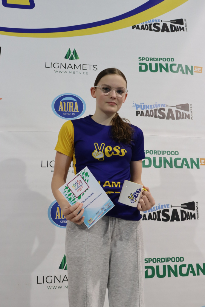🥇 50 selili 30,84 🥈 50 vabalt 29,21 🥈 100 vabalt 1.03,75 🥈 50 liblikat 31,48 🥈 100 kompleksi 1.12,01 ja 🥉 50 rinnuli 38,38
